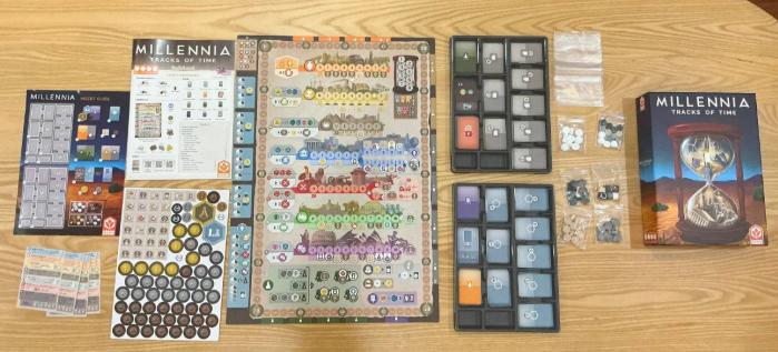 Millennia: Tracks of Time is an epic civilization-builder spanning eight epochs—from ancient history to the near future. Engage in card drafting, economic strategy, and planned obsolescence as you steer your civilization toward fame. Featuring over 300 richly illustrated cards, historically grounded intricacy, and versatile play for 1–4 players, this game offers a timeless strategic experience—and rewards both foresight and adaptability.