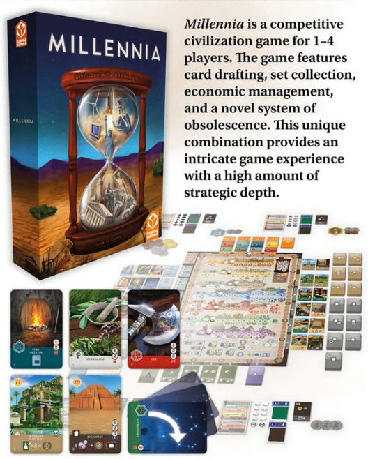 Millennia: Tracks of Time is an epic civilization-builder spanning eight epochs—from ancient history to the near future. Engage in card drafting, economic strategy, and planned obsolescence as you steer your civilization toward fame. Featuring over 300 richly illustrated cards, historically grounded intricacy, and versatile play for 1–4 players, this game offers a timeless strategic experience—and rewards both foresight and adaptability.