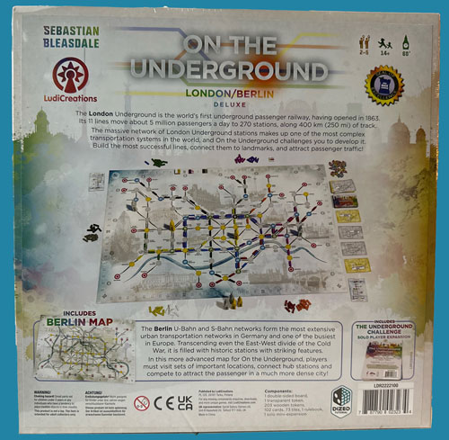 On the Underground: London / Berlin is a route-building strategy game for 2–5 players, that lasts 45–60 minutes. Players build subway lines in London or U-Bahn lines in Berlin using track tokens, aiming to attract a shared Traveler by placing efficient and appealing routes. Meanwhile, the Traveler moves each turn along paths with minimum walking and stops at semi-predictable - rewarding players whose lines are used.